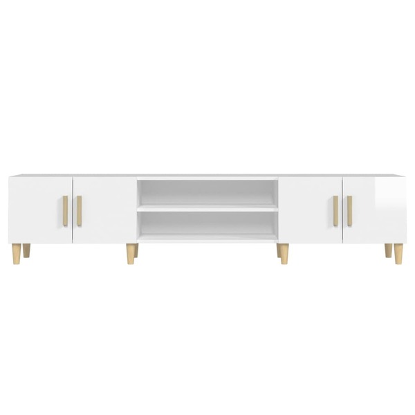 This trendy TV cabinet, featuring a sleek and stylish design, is meant to be a decorative as well as practical addition to your room decor. Durable material: The engineered wood is of exceptional quality with smooth surface and also features strength, stability, and resistance to moisture.Ample storage space: The TV unit has 4 compartments and 4 doors, offering sufficient storage space to keep your essentials well organised and within reach.Wooden feet: The wooden feet give the media cabinet a natural and pleasant look while ensuring stability. It can blend well with any interior decor.Displaying function: The sturdy top of this TV stand is a perfect spot for displaying potted plants, framed photos and other decorative items. Good to know:To make assembly as easy as possible, each product is delivered with a manual.