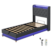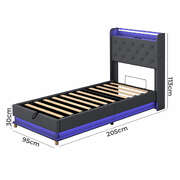Contemporary Single Bed Frame Gas Lift Storage LED Light USB - Soft