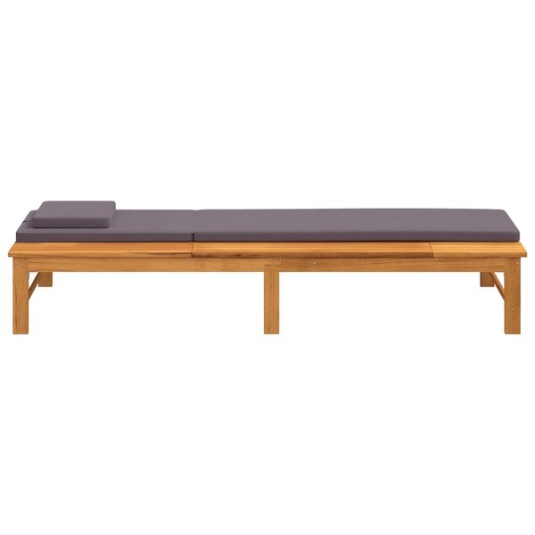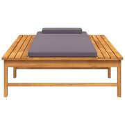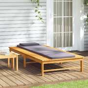 With this trendy wooden sun lounger, you can always find a comfortable spot to relax on your patio or garden. Solid acacia wood: Solid acacia wood is a beautiful natural material. Acacia wood is a tropical hardwood, which is dense, sturdy, and durable. Therefore, the lounger frame made of oil-finished acacia wood is stable and easy to maintain.Adjustable backrest: The comfortable lounger has a reclining backrest with 4 positions for optimal relaxation.Extra comfort: The thickly padded cushion and pillow of the sunlounger provide ultimate comfort during your lounging time.Practical design: The two flat sides of the sunbed are perfect for keeping your mobile phone, book, snacks or drinks within easy reach. Note:To make sure your outdoor furniture stays beautiful, we recommend protecting it with a waterproof cover.