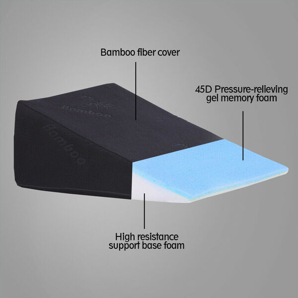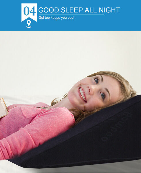 The amazing memory foam wedge pillow with cooling gel can take the pressure off your back efficiently.