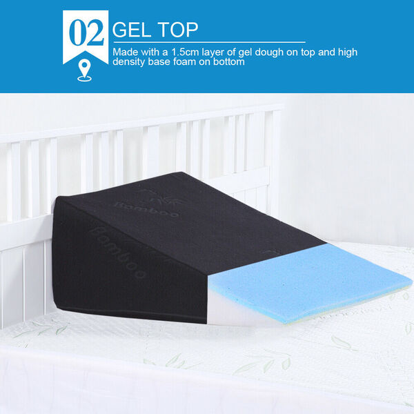 Cool Gel Memory Foam Bed Wedge Pillow Black 25+30