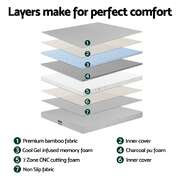 Cool Gel Memory Foam Mattress Charcoal 7-Zone Washable Bamboo Cover 15cm Queen