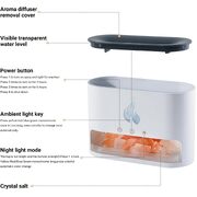 - Transform your space with the Air Diffuser. This stylish diffuser features a realistic flame effect and color-changing LED lights, creating a beautiful aesthetic that will blend seamlessly with any room's decor. Enjoy up to 18 hours of mist enriched with Himalayan salt stones for a healthy atmosphere, all thanks to its generous 200 mL water tank.