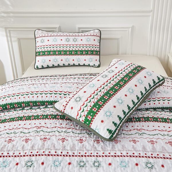 Bring Festive Magic with Our Christmas 3-Piece Quilt Bedspread Set
