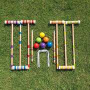 Six colour-coded mallets and balls and six vinyl-coated steel wicket hoops are all you need for the big game! Playing is simple. To score you merely have to knock your ball so that it passes through the targeted hoop.