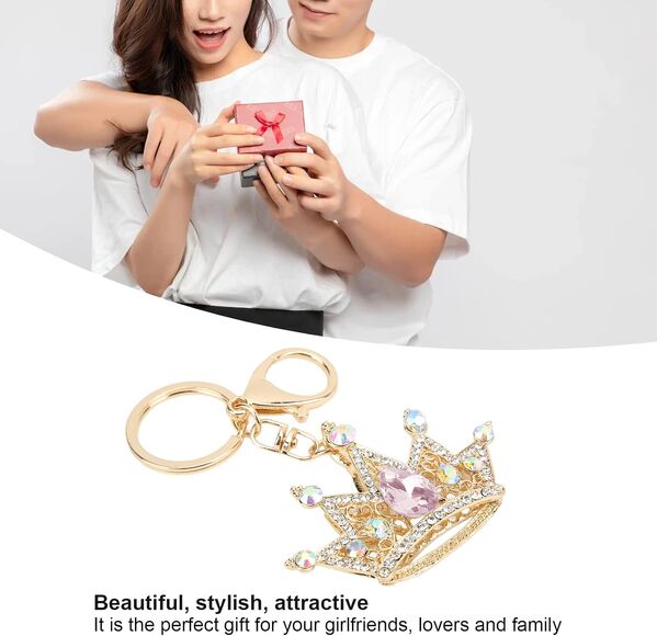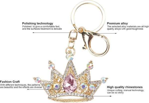 Crown Keychain Gold 3D Rhinestone Sparkling Charm Key Ring For Women Girls