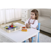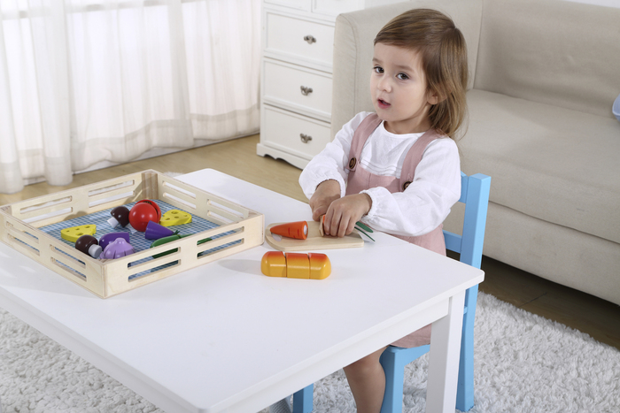 Wooden vegetables which can be cut and served . A great way to teach and enforce healthy eating.