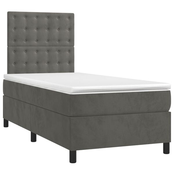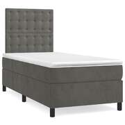 Dark Grey Velvet Box Spring Bed Pocket Spring Mattress King Single with Topper