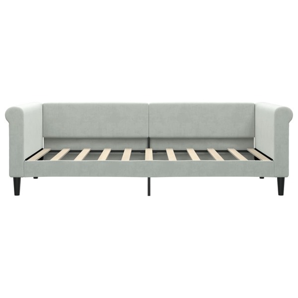 This 2-in-1 daybed with trundle, serving as both a sofa and bed, makes a practical and eye-catching addition to your living room or bedroom. Versatile daybed: The sofa bed functions as a sofa during the day and easily converts into a double bed at night by pulling out the trundle, providing a convenient solution for hosting guests and maximising space.Soft velvet and solid construction: This day bed sofa has a sturdy frame made of wood and metal and is upholstered in soft and comfortable velvet.Modern design: The couch bed has a modern design that features clean lines, a minimalistic look, as well as natural light, and will add a modern style to your interior! Good to know:Mattresses are not included with this bed. We do offer a various selection of mattresses. You can check our shop for matching mattresses.