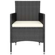 Enjoy a nice meal or afternoon tea in your outdoor space with this poly rattan garden dining set! Featuring an elegant design, it will become the focal point of your garden and patio! The practical outdoor dining set has a powder-coated steel frame covered with PE rattan, making it durable and suitable for daily use. Thanks to their lightweight construction, all items are easy to move. The table is excellent for keeping drinks and food within reach. The chairs are designed with curved backrests and armrests for better ergonomic shape for maximum comfort. Additionally, the thickly padded cushions are included for added support and the zipped cover is removable for easy washing. Note: In order to extend the life of your outdoor furniture, we recommend you to clean it regularly and do not leave it outdoors without protection unnecessarily.Clean: Use a mild soap solution.Storing: If possible, store in a cool, dry place indoors. If the product is stored outdoors, protect it with a waterproof cover. Wipe and dry the excess water or snow from flat surfaces after a rain or snowfall. Allow sufficient air circulation to avoid moisture-related damage.