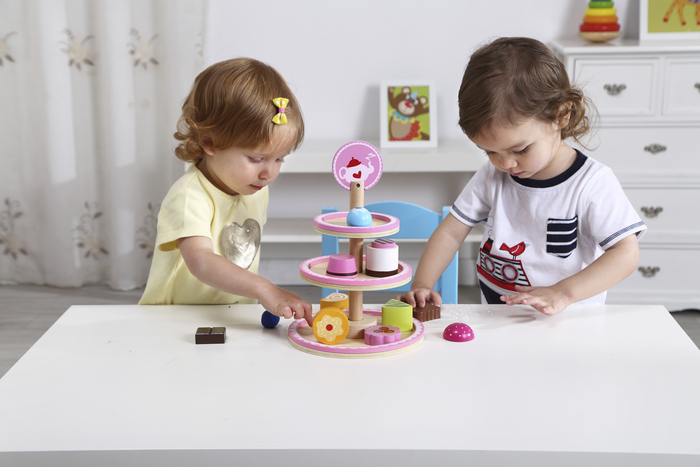 Our desert stand is one of a kind. Each piece of dessert is beautifully crafted to replicate real life food. It';s made from a combination of Tea Wood and MDF. There are 3 tiers to this set and are the perfect source of entertainment when you want to have a tea party of your own!