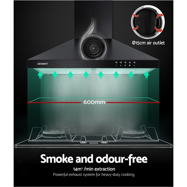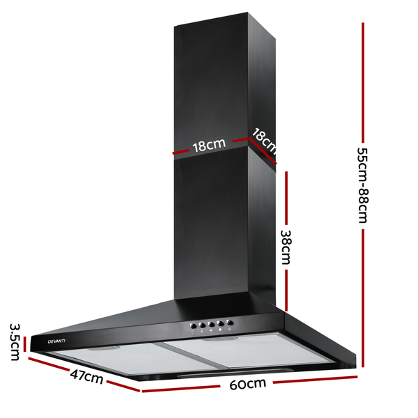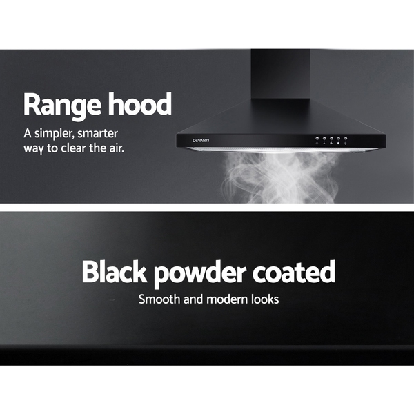 DEVANTi 600mm 60cm Rangehood Stainless Steel Range Hood Home Kitchen Canopy Black