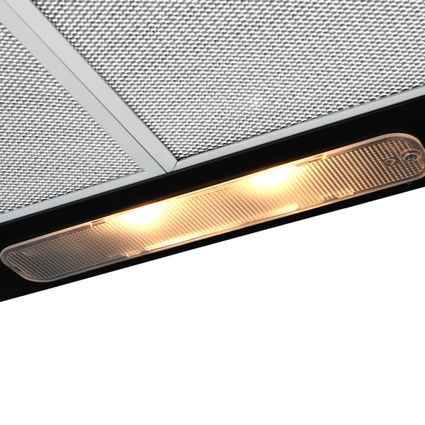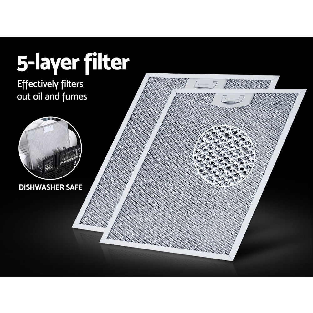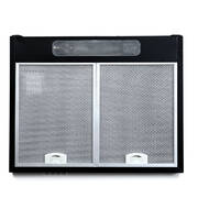 Say goodbye to smoky fumes and unwelcomed cooking odours with the Devanti Range Hood. With its high-performance motors, the black-coated steel range hood provides a steady upflow and filtered extraction of fumes and oil to keep your cooktop area clean and fresh after every use. With its 3-speed rocker button switch, the extraction speed can be adjusted to suit the circumstances. Other features include two non-stick 5-layer aluminium filters that are removable and replaceable and two bright 25W lamps to facilitate your cooking illumination. The range hood is wall mounted and the chimney can be adjusted to fit the installation space.