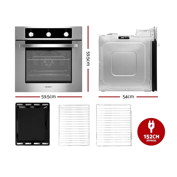 Devanti 60cm Electric Built in Wall Oven Convection Grill Stove Stainless Steel