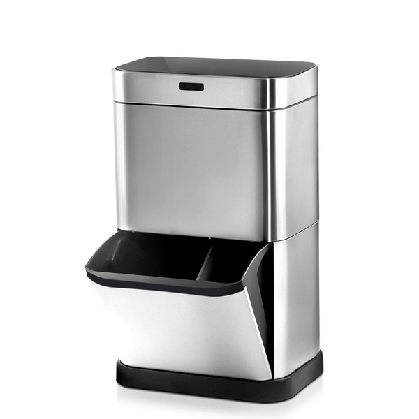 Welcome to our new generation of sensor bins. Our latest Devanti Motion Sensor Bin now features a host of other useful functions that make waste disposal and recycling so much easier in one bin. A recycling drawer with a divider enables you to hold your recyclable waste in different compartments if needed. Better still, there is also an integrated odour filter box for placing a deodorant (not included) to keep the bin smelling fresh all the time. Of course, the sensor bin still has the exceptional qualities that make it a joy to use. Such as the large volume capacity, convenient bin liner holder, soft opening and closing and not least, the stylish stainless steel finish for a premium look.
