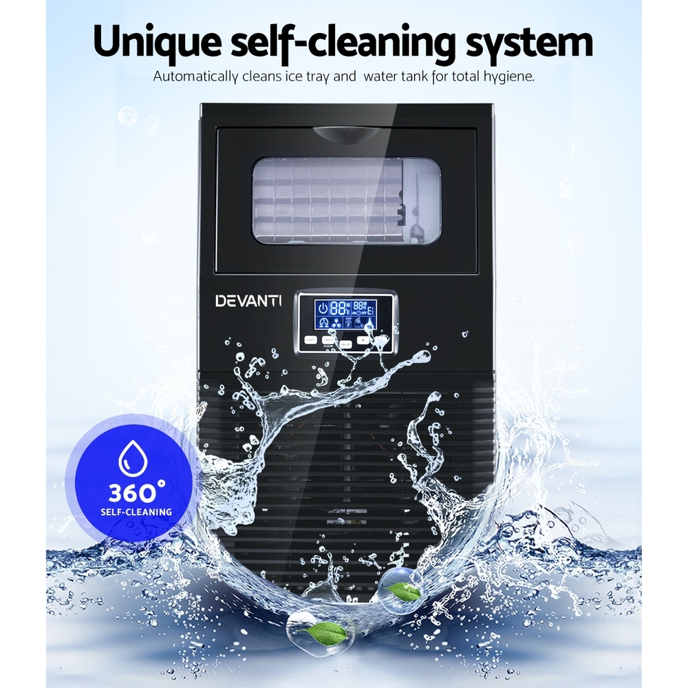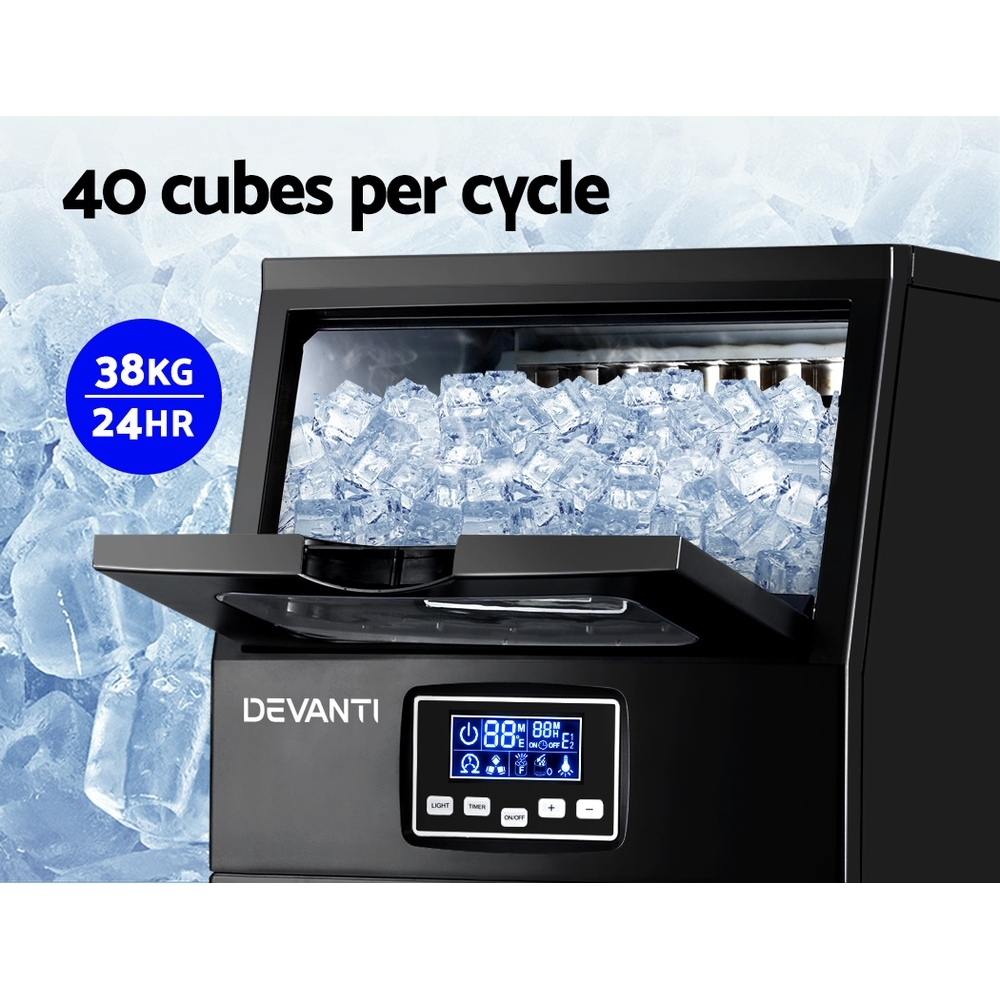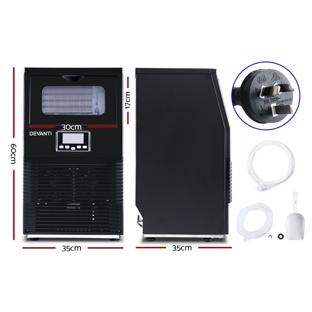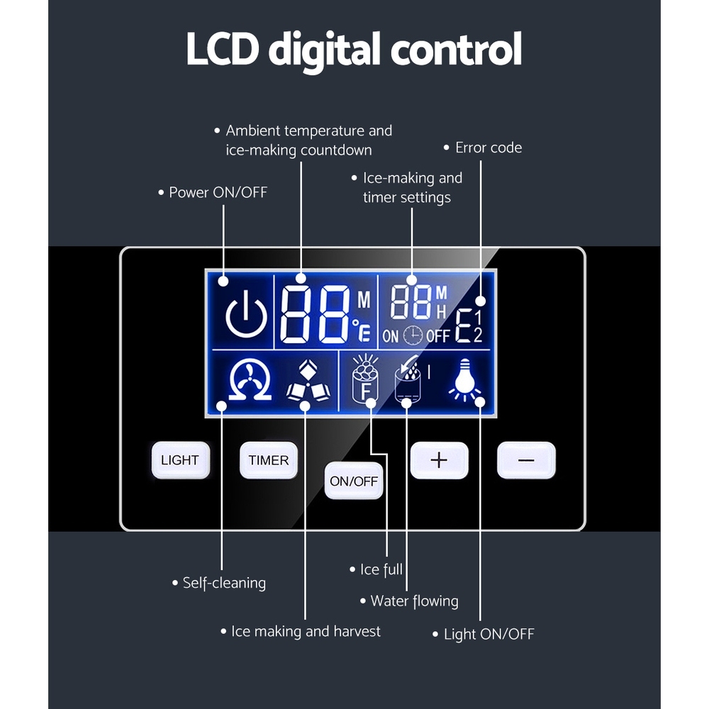 Devanti Ice Maker Machine Commercial Square Ice Cube Black LCD Display