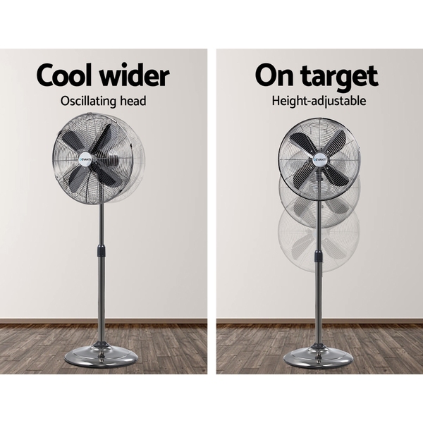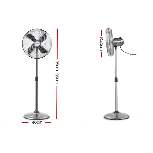 Now you can even cool your home in style with our retro Devanti Pedestal Fan. Its four-bladed design ensures that breezes are created efficiently and effectively while the three fan speeds allow you to set your preferred wind intensity to suit your comfort. The 40cm diameter oscillating fan also has a greater cooling arc and wind flow. The pedestal fan is also height-adjustable between 95cm and 135cm. The convenient handle makes for easy carrying so that you can stay cool wherever you are. Not least, its narrow mesh fan guard prevents any fingers from being accidentally caught within the fan. Perfect for use indoors or outdoors with residential or commercial properties, our pedestal fan is always reliable in every way.