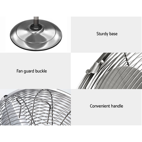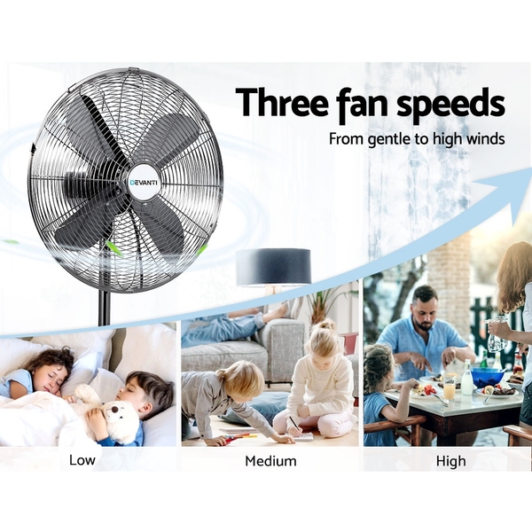 Devanti Metal Pedestal Fan Vintage Portable Fans Oscillating Chrome 3 Speed Black