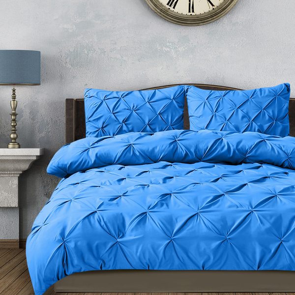 Diamond Pintuck Duvet Cover Pillow Case Set in Double Size in Navy
