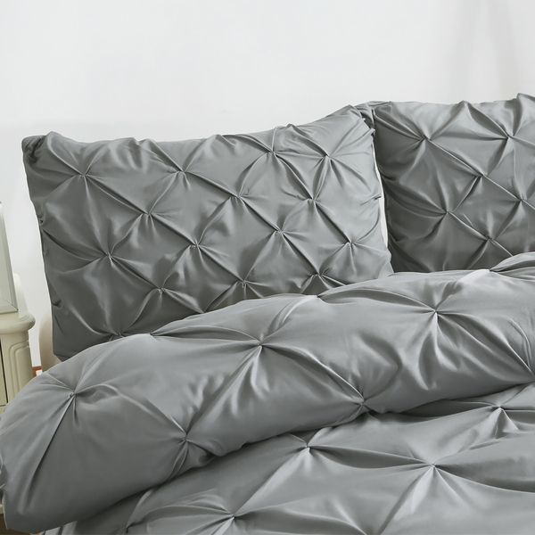 Diamond Pintuck Duvet Cover Pillow Case Set in Full Size in Charcoal