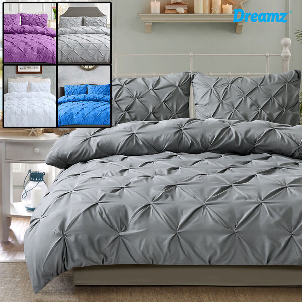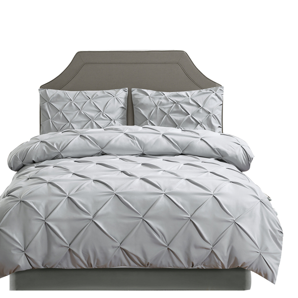 Diamond Pintuck Duvet Cover Pillow Case Set in Full Size in Grey