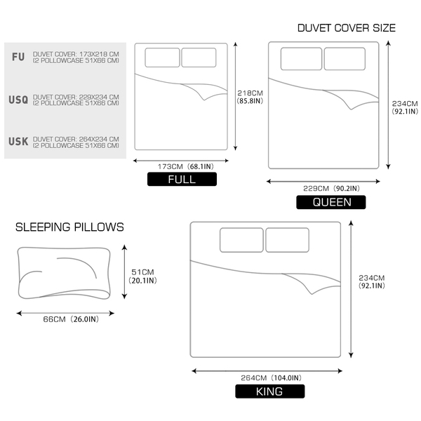 - Full:173x218cm(Similar to Standard AU Double Size: 180x210cm)