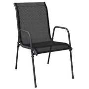 Enjoy a nice meal or afternoon tea in your outdoor space with this garden dining set! Featuring an elegant design, it will become the focal point of your garden and patio! Stable frame: The armchairs and table have a powder-coated steel construction, making them sturdy and stable.Durable material: Thanks to the strong textilene fabric, these outdoor chairs are weather-resistant and easy to clean.Sturdy tabletop: The tabletop is made of tempered glass, making it easy to clean. Additionally, the tabletop is perfect for placing snacks, drinks, vases, fruit bowls, or other decorative items.Comfortable seating experience: Designed with a curved backrest and armrests, the garden armchair has a more ergonomic shape for maximum comfort. Good to know:To make sure your outdoor furniture stays beautiful, we recommend protecting it with a waterproof cover.