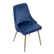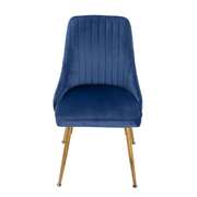 Dining Chair Blue Velvet Upholstered Art Deco Design With Metal Leg