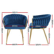 Dining Chair Set 4 Velvet Weaving Armchair Modern Upholstered Blue