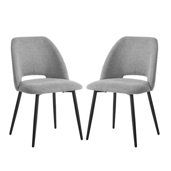 Dining Chair Set of 2 Grey Linen Fabric with Wraparound Padded Seat