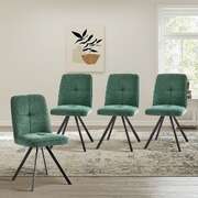 Dining Chair Set of 4 Green Linen Fabric Padded Seat Accent
