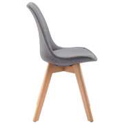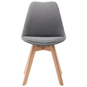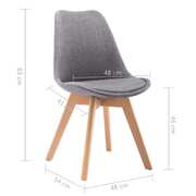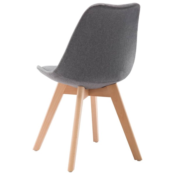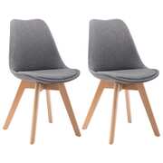 These fabric dining chairs have a timeless appearance thanks to their retro styling. They can also be used as stylish office chairs. The dining chairs have strong wooden legs. Upholstered in high-quality fabric, the seat is padded for added comfort. Add a touch of cool retro style to your living space with this set of dining chairs! Delivery includes 2 dining chairs. The chairs are easy to assemble.
