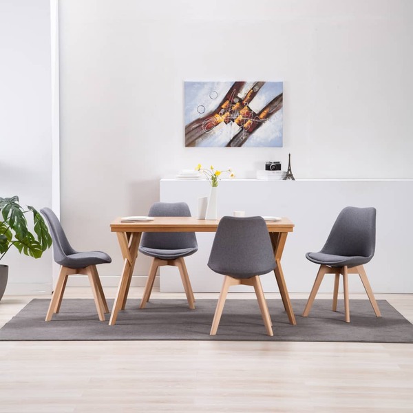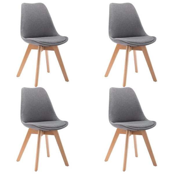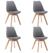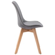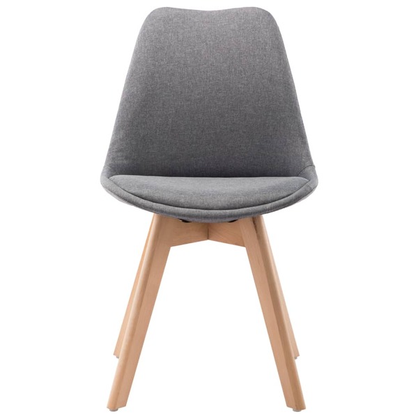 These fabric dining chairs have a timeless appearance thanks to their retro styling. They can also be used as stylish office chairs. The dining chairs have strong wooden legs. Upholstered in high-quality fabric, the seat is padded for added comfort. Add a touch of cool retro style to your living space with this set of dining chairs! Delivery includes 4 dining chairs. The chairs are easy to assemble.