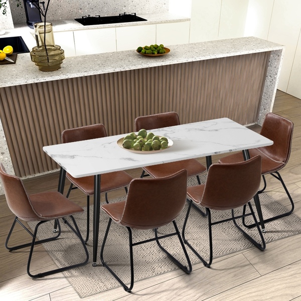 4x Dining Chairs Kitchen Table Chair Lounge Retro Padded Seat PU Brown