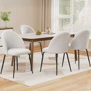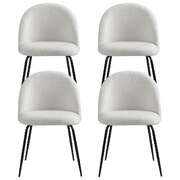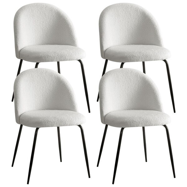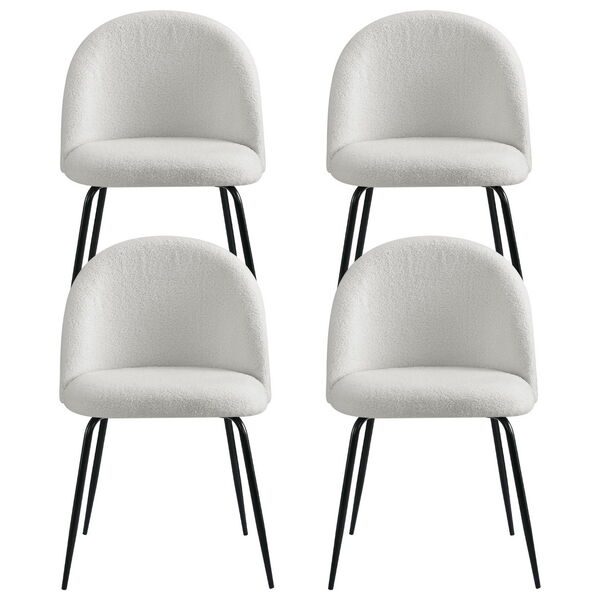 Set of 4 Dining Chairs in White Sherpa Boucle Fabric - Modern