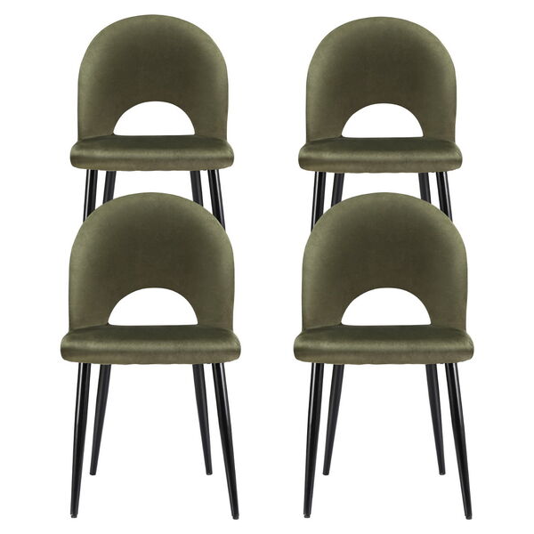Set of 4 Hollow Green Velvet Dining Chairs for Dining Room - Stylish