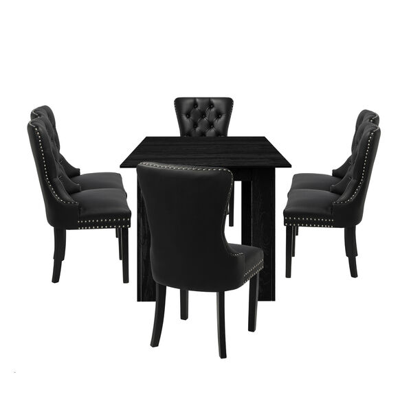 Immerse yourself in the timeless charm of our Dining Chair and Extendable Table Set, featuring sleek lines and a contemporary aesthetic that effortlessly enhances any dining area. Crafted with meticulous attention to detail, the design strikes the perfect balance between modern sophistication and enduring elegance.