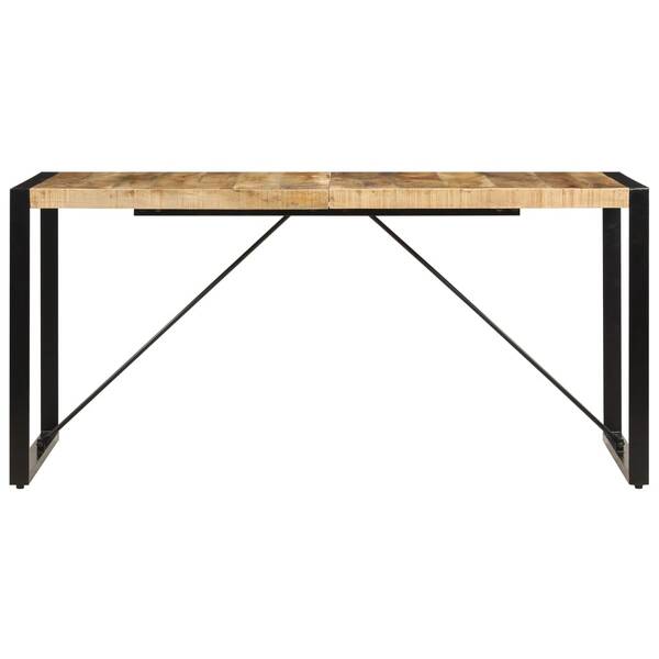 This industrial-style wooden dining table will make a captivating addition to your kitchen or dining room. This dinner table is made of solid mango wood, a hardwood with dense grains. Rough mango wood not only has the strength to bear the weight, but also stands the wear and tear of time. As a consequence, this beautifully-designed dinner table is considerably stable, durable and eye-catching. Every step of the process is carried out with the greatest care, be it polishing or lacquering. Additionally, the strong powder-coated steel legs add to the table's sturdiness. Besides, the dining room table is easy to assemble. Important note: The grains vary from piece to piece, making each piece unique. The delivery is random, ensuring the exclusivity and individuality of your product.