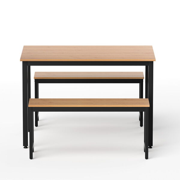 Transform your dining area with the 3-Piece Dining Set, where modern industrial design meets the warmth of nature. Featuring a bright natural oak finish and a robust black metal frame, this set creates a welcoming and airy atmosphere, blending perfectly with Scandinavian, modern, or coastal interior styles.