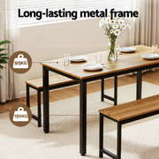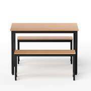 Dining Table and Chairs Set 3PCS Kitchen Metal Desk Bench Natural Oak