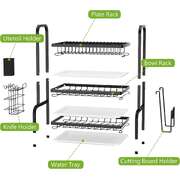Dish Drying Rack 3 Tier Large Capacity Kitchen Storage with Utensil and Cutting Board Holder