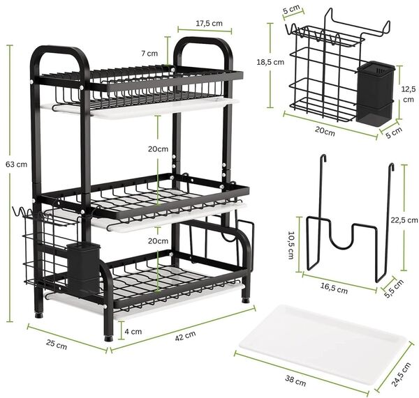 - REMOVABLE & ADJUSTABLE DRAIN TRAYS FOR EASY CLEANING: Each tier comes with an independent, pull-out drain board that makes cleaning effortless and prevents water from pooling on your kitchen surface. These removable trays ensure dishes dry efficiently without rewetting already dry items. The dish drainer can be easily disassembled for quick cleanup and reassembled without hassle.