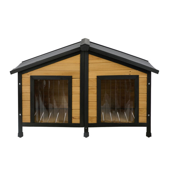 Better still, the interior is spacious with a removable partition to create room for one medium-size dog or two small dogs. Total flexibility. Plus, a hinged PVC roof opens both ways entirely and makes for easy accessibility to clean or air the house when necessary. Keeping the habitat clean and hygienic at all times.
