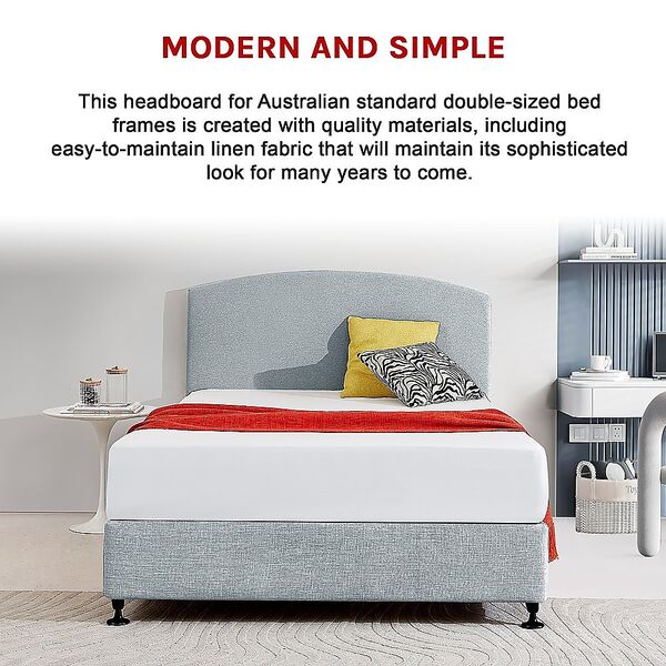 This headboard for Australian standard double-sized bed frames is created with quality materials, including easy-to-maintain linen fabric that will maintain its sophisticated look for many years to come. This particular model comes with simple design that will blend seamlessly with a wide variety of bed frames and other bedroom furniture.