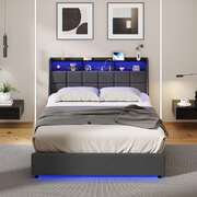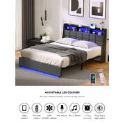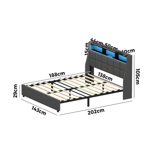 Double Bed Frame With LED Storage Headboard And USB Charging Ports
