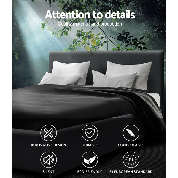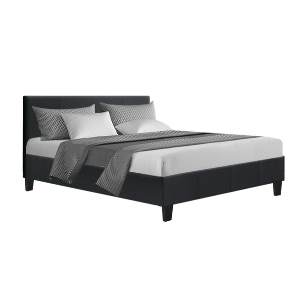 Bed Frame Double Full Size Base Mattress Platform Fabric Wooden Charcoal NEO