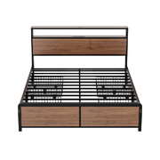 Double Metal Bed Frame With Storage Headboard 4 Drawers LED Lights Charging Station Vintage Brown