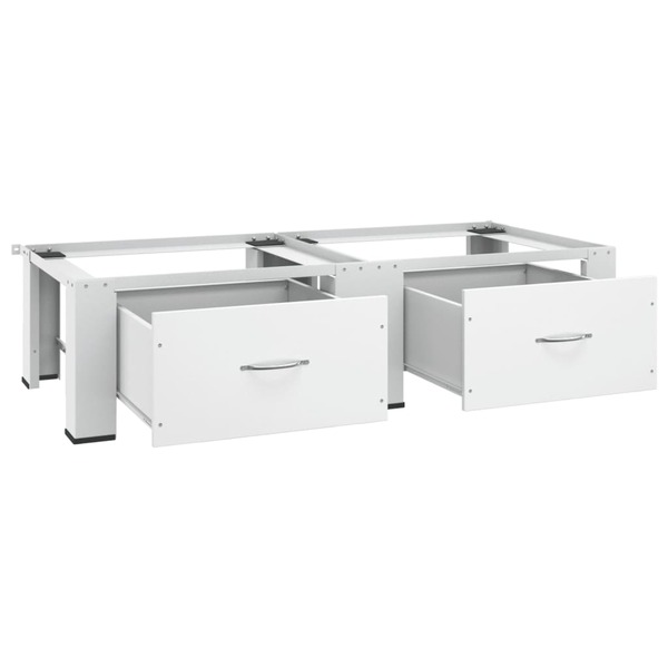 Our dual pedestal can be used to keep your washing and drying machine off the floor and raise them to a suitable working height, so you don’t have to bend too much to load or remove your laundry. The pedestal is made of strong steel, making it very sturdy and each can hold a washing machine or drying machine weighing up to 100 kg. Thanks to non-slip pads, the washing and drying machine stands stably. The feet are also rubberised, which makes them non-slip and keeps your floors from getting scratched. The pedestal also features two enclosed drawers for extra storage space.