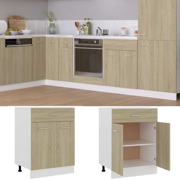 This drawer bottom cabinet, with its simple design, optimises your kitchen space and provides ample storage space for your personal belongings! The storage cabinet is durable and functional, keeping your kitchen more organised. The cabinet has one drawer and two shelves, offering sufficient space to store bowls, plates, pots, and other kitchen appliances. There are two doors outside the shelves to keep stored items clean. Additionally, this cabinet is easy to clean with a damp cloth. Please note: The worktop is not included in the delivery.