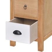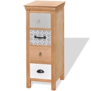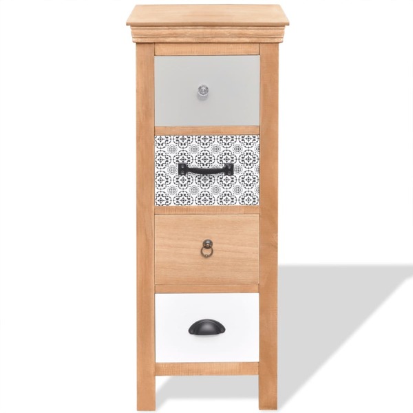 This striking wooden drawer cabinet with four drawers will become the focal point of your living area, lounge room or bedroom. It can also be used as a telephone stand, side cabinet, storage cabinet, end table, end cabinet. This drawer cabinet, featuring four drawer handles in different designs, will make a practical as well as highly decorative addition to your living area, lounge room or bedroom. The square top is ideal for displaying decorative objects, photo frames, or even potted plants, while the four large drawers provide ample space for keeping all kinds of smaller items organised and within reach. Thanks to the high-quality solid wood material, this side cabinet is very sturdy and durable. Assembly is really easy.